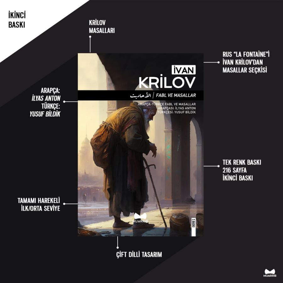 Krilov Masalları Muarrib'in 13. eseri, İlyas Anton tarafından Arapçaya, Yusuf Bildik tarafından Türkçeye çevrildi. Yayın yönetmenliğini Muhammed Yasin Can üstlendi.