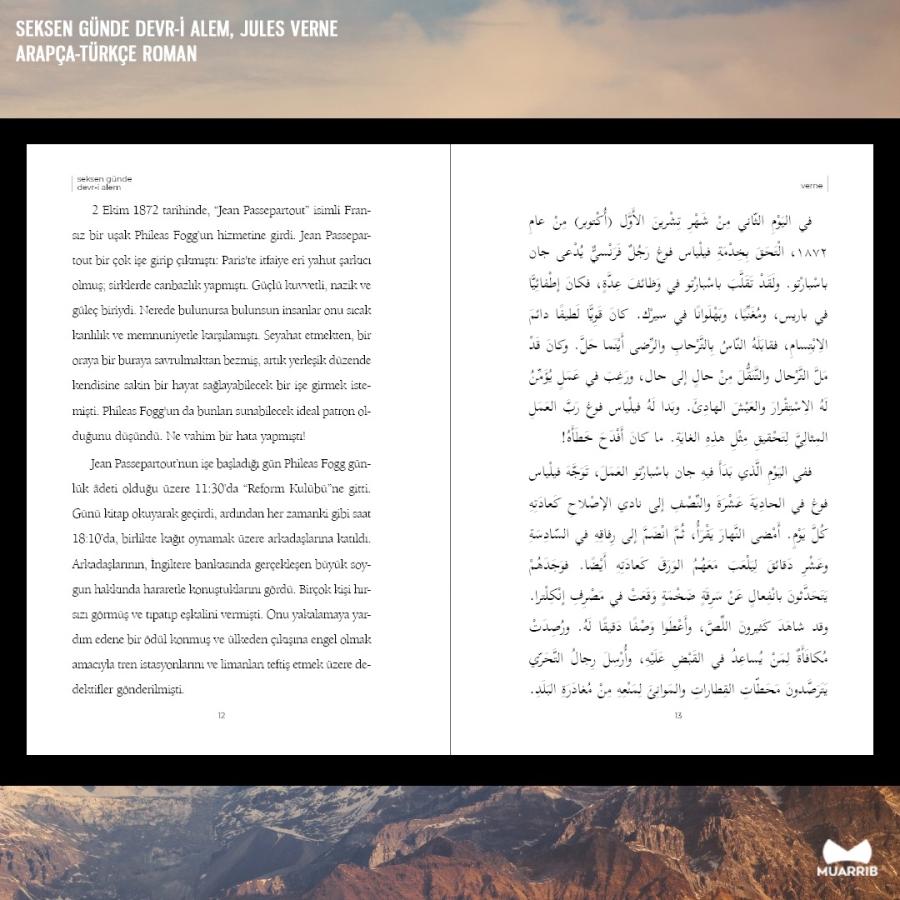 Seksen Günde Devr-i Alem, Muarrib'in 21. yayını. Meşhur Fransız klasiği, Jules Verne'nin Seksen Günde Devri Alem'i, baş kahraman Fogg'un dünyayı dolaşma maceralarını anlatan bir roman. Arapçaya tercümesi daha önce yayınlanmış farklı birkaç nüshadan Şafak Yalçın tarafından derlendi. Türkçeye tercümesi ise Muhammed Yasin Can ile Şafak Yalçın tarafından gerçekleştirildi.
