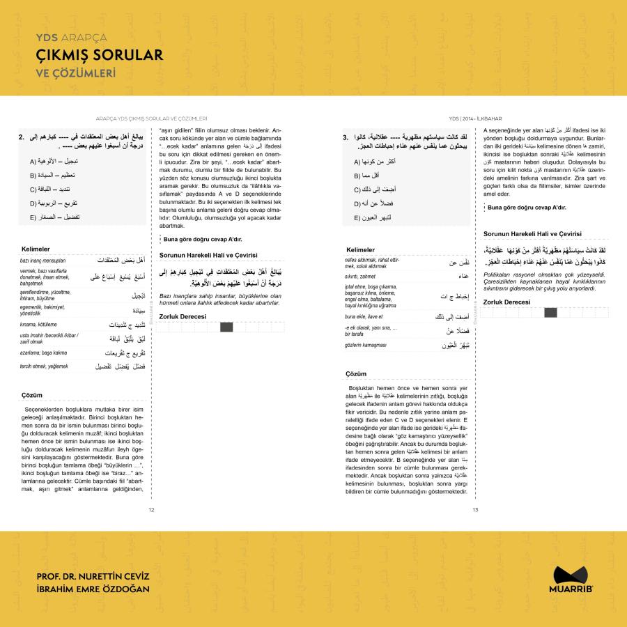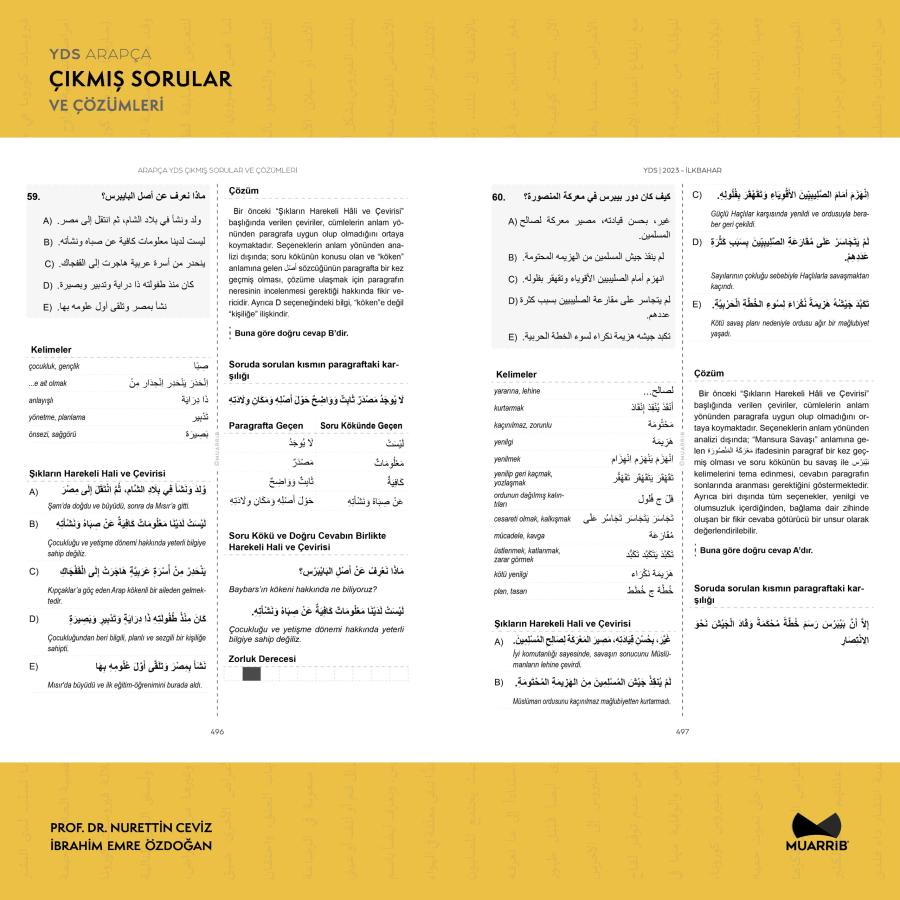 YDS Arapça alanında detaylı çözümleriyle çıkmış sorular ilk kez yayınlanıyor. 2023-2018-2016-2015-2014 Bahar sınavları, Nurettin Ceviz ve İbrahim Emre Özdoğan'ın detaylı çözümleriyle birleşti.