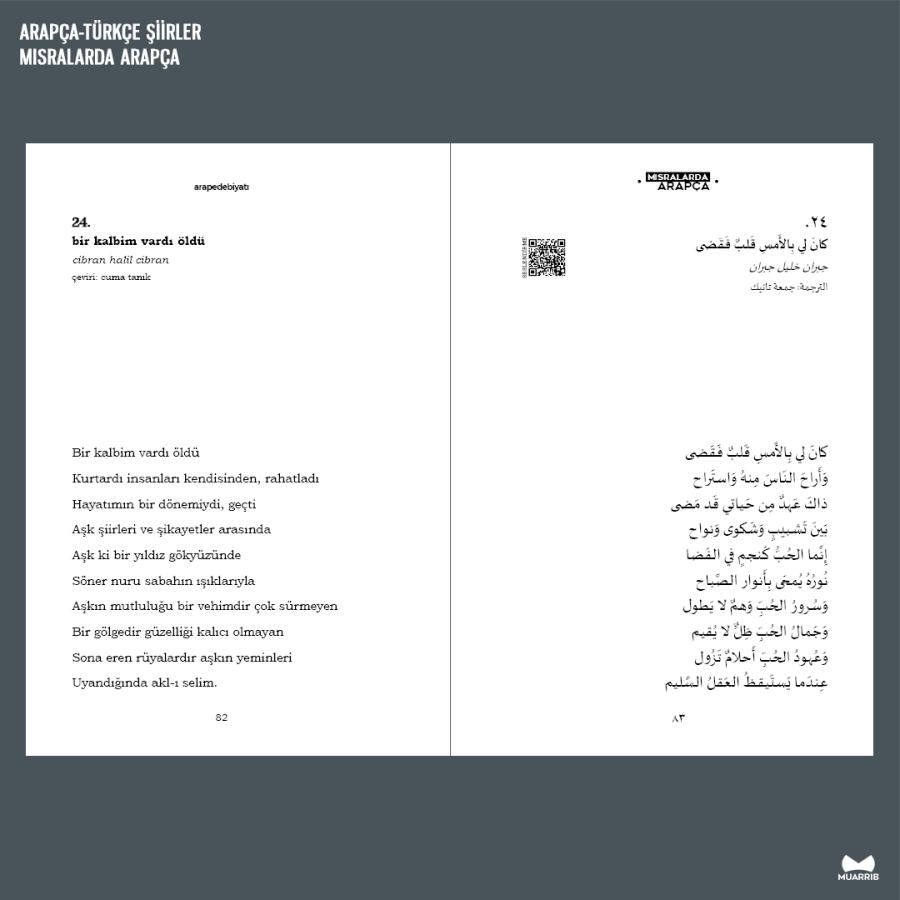 Muarrib'in 10. kitabı Mısralarda Arapça. Arap ve Türk edebiyatından çift dilli 66 adet şiiri ihtiva ediyor. Şiirlerini aldığımız şairler şöyle: